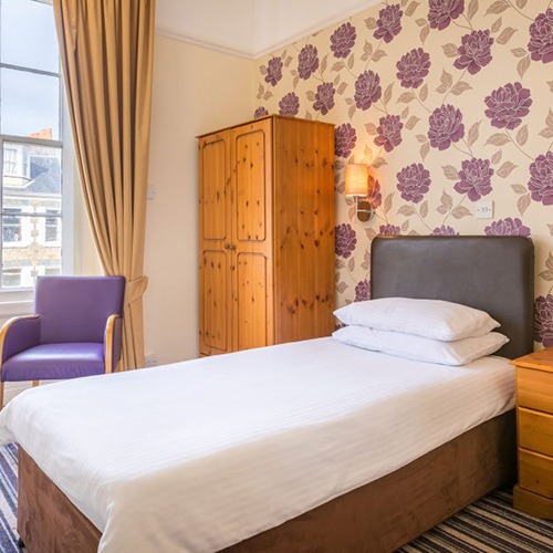 Single rooms are approximately 129 ft² and benefit from en-suite bathrooms and a comfortable bed. Rooms also include Wi-Fi, flat screen TV, direct dial telephone, hairdryer and hospitality tray.