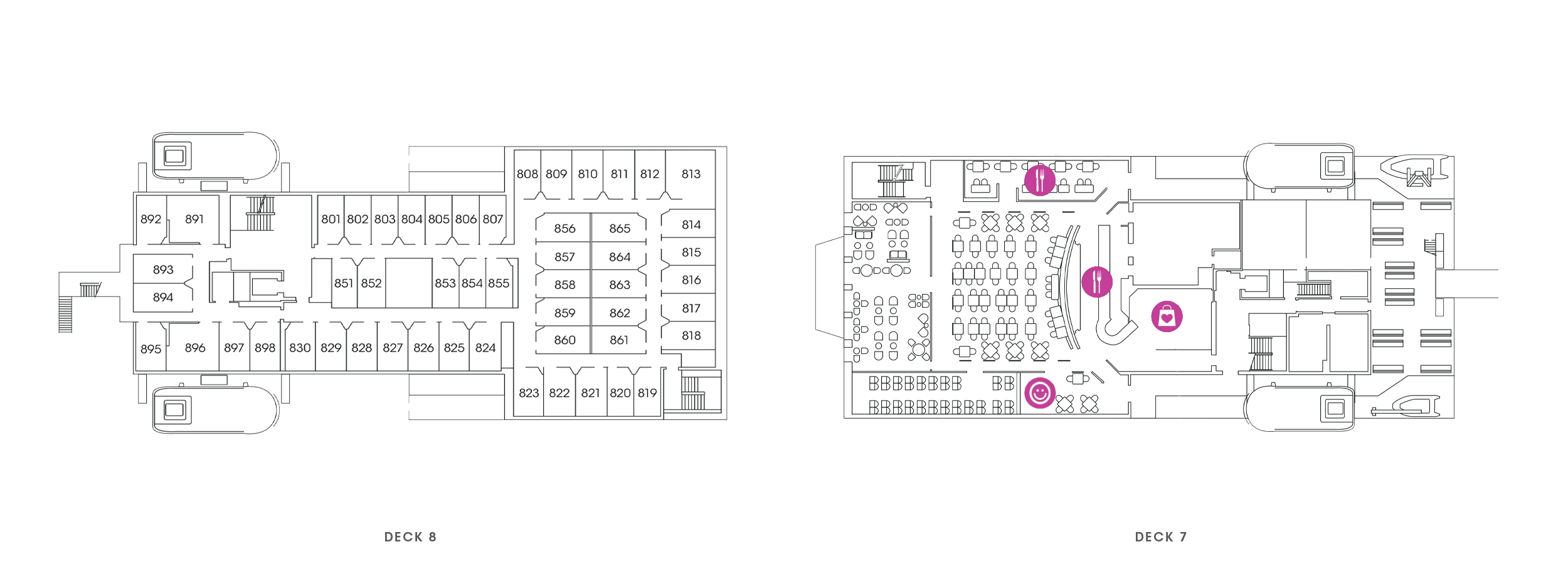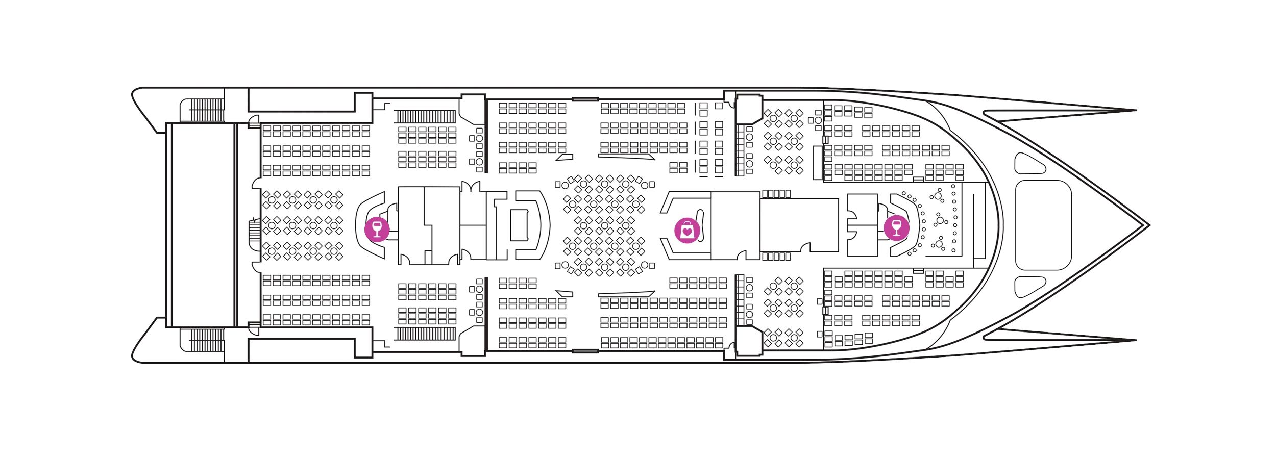 Condor Voyager has plenty of space to walk around and boasts comfortable seating, café, bars as well as a duty-free shop where you can pick up some huge savings. There’s a guaranteed seat for everyone in the air-conditioned lounges as your fare includes a Standard Voyager seat anywhere on the vessel.